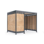 Modern fietsenstalling met plat dak beschermt uw fietsen of andere goederen tegen regen en wind. De P-Line is geschikt voor panelen of sedum.
