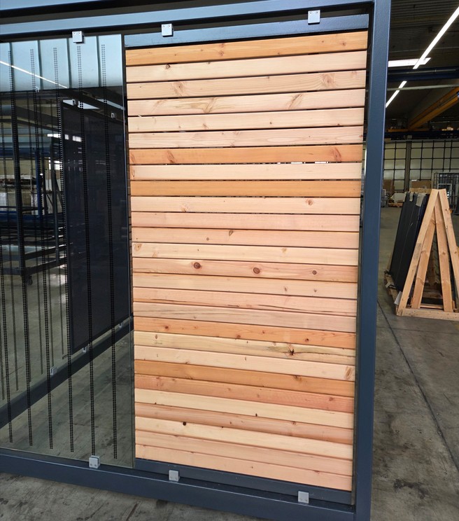 Voorzien van geïntegreerde regengoot, staal verzinkt framewerk, houtsoorten naar keuze en aluminium gecoate dakpanelen.